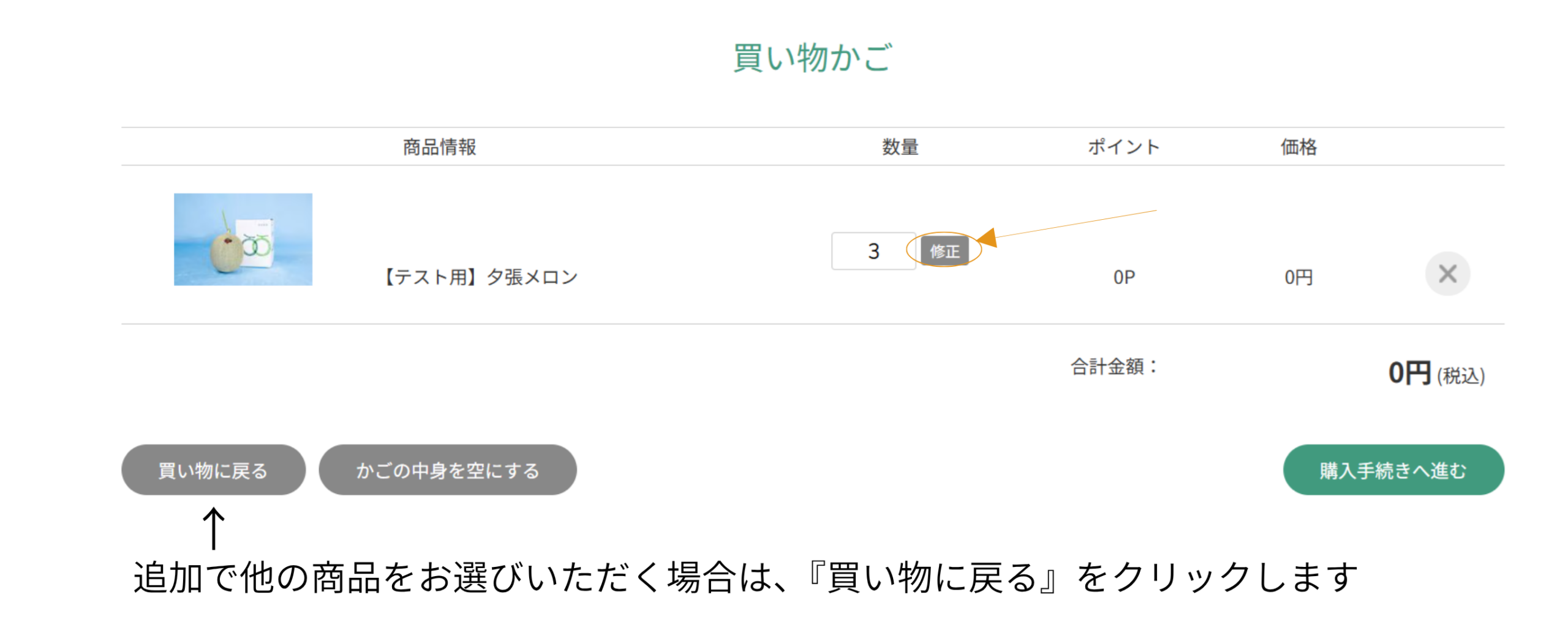 選択した商品に間違いがなければ「購入手続きへ進む」をクリックします