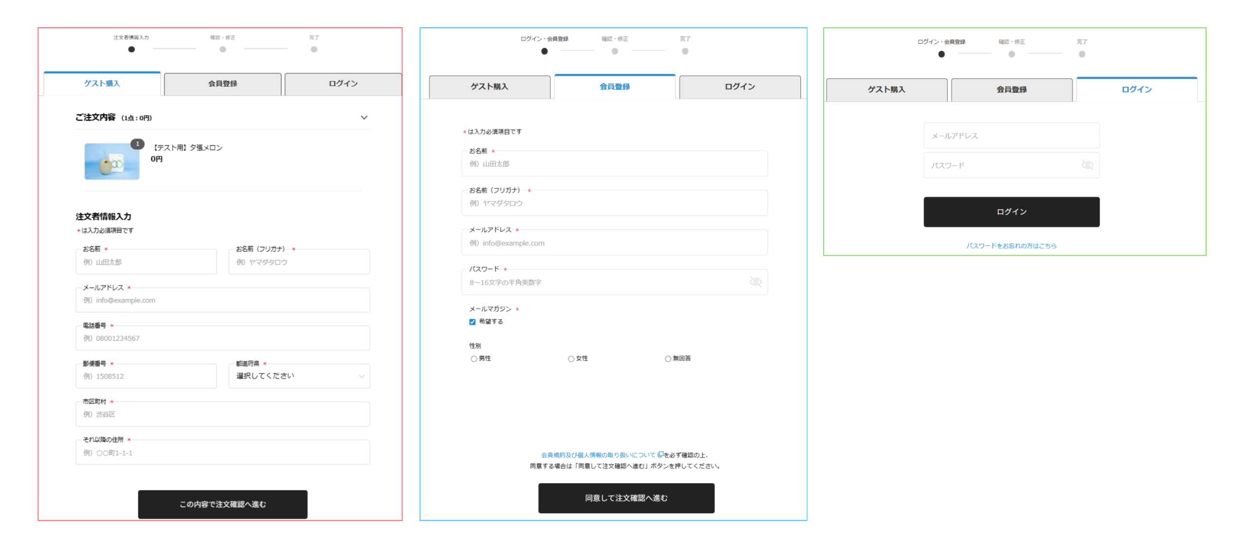 ゲスト購入・会員登録・ログイン(過去に会員登録済の方)からご希望の注文方法をお選びください。
