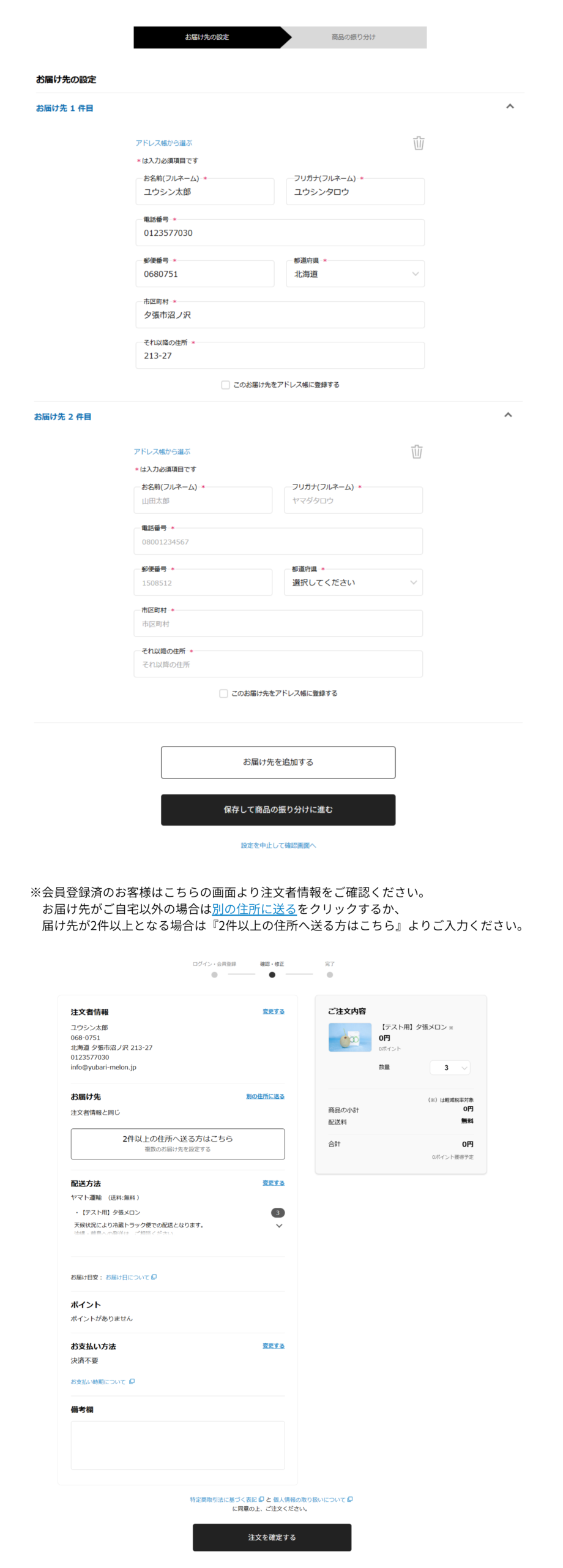 3件以上になる場合は1件目・2件目のあと『お届け先を追加する』より3件目以降をご入力ください。