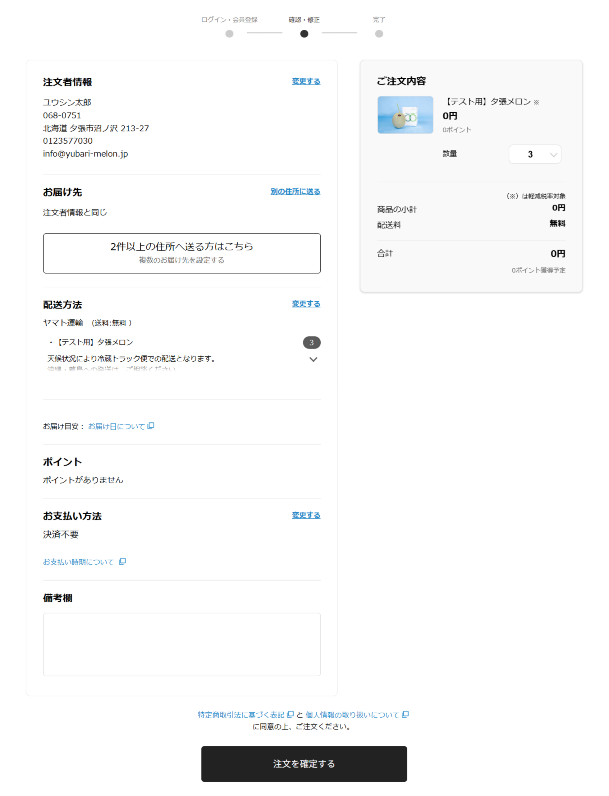 ご注文内容を確認し、ご依頼主、お届け先、商品にお間違いがなければご注文を確定します.